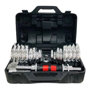 - Tenha seu equipamento profissional em casa; - Acompanha maleta com alça para que possa transportar para onde quiser; - Super versátil, ajustável para que você consiga treinar vários tipos de movimentos; - Com este equipamento você poderá treinar vários grupos musculares. Braços, pernas, costas, bíceps, tríceps, ombro e muito mais; - Super Fácil de Utilizar; - Você consegue ajustar o peso nas barras, de acordo com a sua necessidade; - As barras rosqueáveis são super fáceis de montar e desmontar; - Cuide do seu corpo e da sua saúde com um equipamento de qualidade superior; - A sua melhor opção para levar os seus treinos para um outro nível, queimar calorias, ganhar e fortalecer seus músculos;