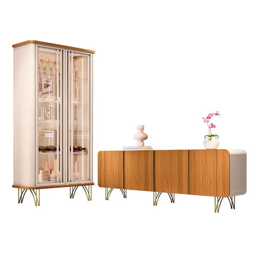 Transforme sua sala de estar em um espaço contemporâneo e elegante com nosso incrível Buffet Saluti e Cristaleira Evora.