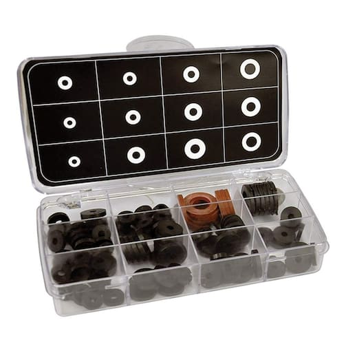 Kit de arandelas Danco Perfect Match 10875 Variado. El diseño plano permite un flujo completo de agua y proporciona un cierre positivo, resistencia a la abrasión y resistencia a la temperatura. - El diseño plano permite un flujo completo de agua y proporciona un cierre positivo, resistencia a la abrasión y resistencia a la temperatura. - Estas arandelas planas Danco pueden ayudarte a reparar tu grifo con fugas. - Las arandelas planas para grifos se usan principalmente en estilos de grifos de apertura rápida.