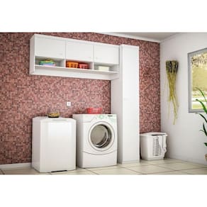 DESCRIÇÃO O Kit de Armários Multiuso Lavanderia Eloísa 04 Portas Branco é um kit compacto, composto por um armário de 01 porta e armário aéreo 03 portas com nichos inferiores, todos com excelente espaço interno para organizar sua área de serviço. Estrutura de excelente qualidade em MDF que visa boa resistência e durabilidade. Confira!