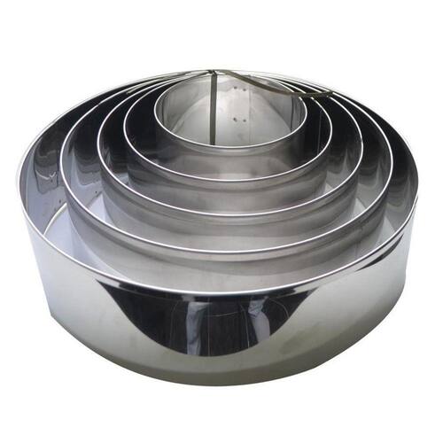 Com sua altura padrão, seus bolos sairão intactos e super uniformes. Conjunto de Aro Cortador Redondo Alto 5 Peças Margepan Assadeiras Material: Aço Inox