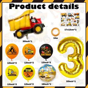 Decoração de festa divertida com tema de construção: inclui um grande balão de alumínio com o número “3" e uma variedade de veículos de construção, como escavadeiras, caminhões basculantes e empilhadeiras, perfeitos para uma festa de aniversário infantil. Material durável: feitos de papel alumínio e látex de alta qualidade, esses balões são duráveis e projetados para durar durante toda a festa, criando uma atmosfera vibrante e empolgante. Uso versátil em festas: ótimo para uso interno ou externo, ideal para festas de aniversário, eventos infantis e celebrações com temas de construção. Perfeito para qualquer espaço, de salas de jogos a salões de festas. Fácil de inflar: esses balões são fáceis de inflar com ar ou hélio (dependendo de sua preferência) e são projetados para flutuar por um longo período para uma diversão duradoura. Conjunto completo: o conjunto inclui 12 balões e um número de alumínio “3", além de designs com temas de construção, criando uma peça central visual perfeita para o dia especial de seu filho.