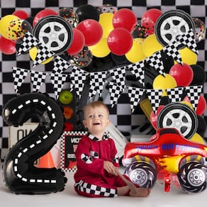 Kit de festa temática de carros de corrida: este conjunto de balões de 9 peças inclui um balão de alumínio de 32" número “2", balões metálicos em forma de pneu, balões de bandeira quadriculada e balões de látex de cores vivas, perfeitos para uma celebração de aniversário com tema de carro de corrida. Materiais duráveis e de alta qualidade: feitos de papel alumínio resistente e látex, esses balões são projetados para durar, proporcionando uma decoração duradoura para seu evento. Ideal para festas de aniversário de meninos: o design divertido dos pneus, as bandeiras quadriculadas e as cores vibrantes tornam este conjunto perfeito para o primeiro ou segundo aniversário de um garoto, criando uma atmosfera empolgante de carro de corrida. Configuração perfeita para festas: este kit de balões é perfeito para criar um cenário ou peça central dignos de uma foto, garantindo que sua festa seja um sucesso entre os convidados e proporcione momentos inesquecíveis. Fácil de inflar e exibir: os balões são fáceis de inflar e exibir, simplificando a criação de uma impressionante configuração de festa com tema de corrida em pouco tempo.