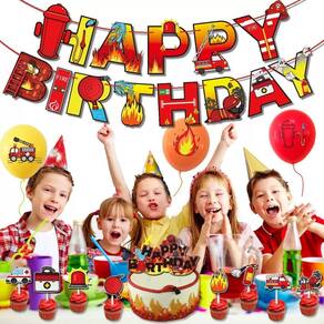 Conjunto completo de bombeiro: inclui balões, faixas, cobertura de bolo e decorações de cupcake, tudo em um emocionante tema de caminhão de bombeiros e quartel de bombeiros. Balões de látex premium: feitos de látex de alta qualidade em vermelho, amarelo e laranja com designs impressos de incêndio, hidrante e caminhão para uma festa alegre e animada. Banner atraente: o banner “Feliz Aniversário” com elementos de bombeiro cria um cenário dinâmico e festivo para as celebrações infantis. Fácil de montar: configuração simples com fitas incluídas, ideal para decorar paredes, mesas ou fundos de fotos de forma rápida e fácil. Perfeito para festas infantis: ótimo para aniversários de meninos, eventos de dramatização de bombeiros ou festas escolares temáticas que inspiram diversão e aventura.