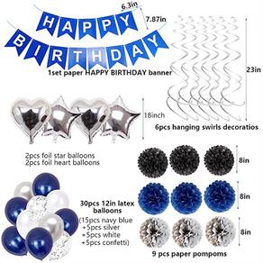 Tamanho: 12-18 polegadas Material: mylar, látex, PVC e papel Peso: 180 g O pacote inclui: 34 x balões, 1 x banner, 6 x espirais suspensas, 9 x pompom de papel Características: 1. Os balões de festa são feitos com látex de borracha natural forte e Mylars de excelente qualidade, não são tóxicos e não são fáceis de estourar, são seguros para usar perto de crianças. 2. O kit de balões é perfeito para formaturas, compromissos, casamentos, aniversários, eventos corporativos, sessões de fotos e assim por diante. Decore qualquer festa interna ou externa como pano de fundo de cabine fotográfica e crie memórias duradouras. 3. Não encha demais os balões de metal e evite queimaduras solares, superaquecimento, objetos pontiagudos e atrito excessivo. Ventos fortes ou fotos podem causar estouro e são recomendados para crianças acima de 6 anos.