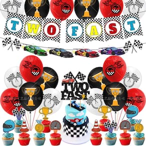 Conjunto completo de temas de corrida: inclui faixas quadriculadas, balões coloridos, coberturas de cupcake e decorações para bolos, tudo em um divertido tema de corrida de carros “Two Fast”. Balões de látex vibrantes: feitos de látex premium com padrões estampados de carros de corrida, chamas e troféus que aprimoram a atmosfera energética da festa. Design de banner atraente: apresenta um banner ousado “TWO FAST” com bandeiras quadriculadas e elementos de corrida brilhantes para criar um cenário animado. Fácil de montar: configuração simples para uso interno ou externo; ótimo para festas de aniversário, eventos de corrida ou fundos fotográficos. Perfeito para celebrações infantis: projetado para festas de aniversário de 2 anos de idade ou amantes de carros, adicionando emoção e personalidade ao seu dia especial.