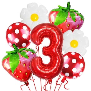 Tema de frutas e flores: este kit de balões apresenta designs vibrantes de morango e margarida em vermelho, branco e verde, com uma combinação divertida de balões de alumínio, perfeitos para uma celebração frutada e floral. Balões de alumínio de alta qualidade: feitos de material de alumínio durável, esses balões oferecem inflação duradoura e um acabamento brilhante, perfeitos para decorações internas e externas. Ideal para o 3º aniversário: inclui um grande balão de alumínio “3", tornando-o o conjunto perfeito para uma comemoração de 3º aniversário, junto com outros balões temáticos para uma festa divertida e festiva. Perfeitos para festas havaianas e de verão: esses balões coloridos são ideais para festas com temas tropicais, encontros de verão e outras ocasiões festivas, adicionando uma atmosfera alegre e alegre. Fácil de decorar: o conjunto vem com tudo o que você precisa para configurar facilmente, incluindo fitas para pendurar e organizar, tornando-o uma solução de decoração de festa sem complicações.