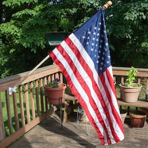 - O melhor kit de bandeira americana – Este kit de bandeira dos EUA vem completo com uma manga de 7,5 cm x 12,7 cm, bandeira dos EUA PERMA-NYL de nylon, um mastro de madeira de pinheiro de 2 peças e um suporte de polietileno de alta densidade (HDPE) de duas posições e é fácil de instalar. A bandeira é 100% feita nos EUA.