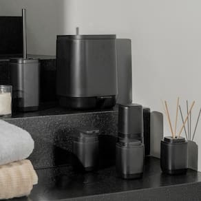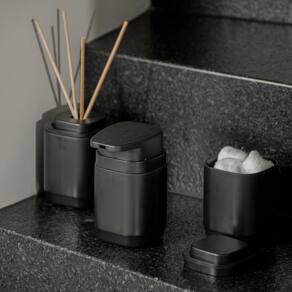 O Kit de banheiro completo Ou da Linha Aura conta com pedal, escova sanitária, difusor, porta sabonete líquido, porta escova de dente e porta algodão. Combinam praticidade e elegância facilitando seu uso diário. O design moderno dos produtos valoriza a decoração, enquanto o acabamento fosco traz sofisticação e detalhes, criando um ambiente digno de um spa em casa.INFORMAÇÕES TÉCNICAS Dimensões: LxAxP: 20x121x25 cm. Material: PS + NYLON + PVC +PP+ AÇOCor: PretoCUIDADOSSugira-se higienizar com sabão neutro e esponja macia, evitando produtos abrasivos no processo de limpeza. Siga as instruções de instalação da embalagem. Ao retirar a película do adesivo, cuide para não encostar os dedos, evitando pequenas sujeiras ou oleosidade, e, ao aplicá-lo na parede, pressione-o bem, pois assim você garante a máxima aderência. Para remover, utilize um secador de cabelos e aqueça bem a área, para que a cola do adesivo fique maleável, facilitando a retirada. Importante: adesivo não reutilizável.CONTEÚDO DA EMBALAGEM 1 escova sanitária de piso/parede Ou Linha Aura. - Preto1 lixeira de pedal Ou Linha Aura. - Preto1 Porta sabonete líquido Ou da Linha Aura. - Preto1 escova porta de dentes Ou da Linha Aura. - Preto1 porta algodão Ou da Linha Aura.SOBRE NÓS Somos apaixonados pelo que fazemos e utilizamos o design como meio de fazer você se sentir em casa onde estiver. Criamos produtos com carinho e cuidado para atender suas necessidades diárias, proporcionando bem-estar, conforto e conforto para seu lar. Somos minimalistas e funcionais pois queremos que você tenha um estilo de vida mais leve e organizado, para atingir o máximo do seu potencial.Prazer, somos Ou.