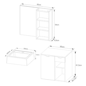 O Kit para Banheiro é a escolha ideal para transformar o seu espaço em um ambiente elegante e organizado. Com um design atual, ele oferece não apenas beleza, mas também funcionalidade, contribuindo para um banheiro agradável e útil. Produzido com materiais de alta qualidade, o kit garante durabilidade e resistência, criando um ambiente harmonioso e agradável para o seu dia a dia. CARACTERÍSTICAS TÉCNICAS: - Produzida em MDP de 15 mm - Acabamento UV na cor Branco - Cuba em Mármore Sintético - Acompanha Espelho - Gavetas com Corrediça Metálica - Puxador tipo Cava - Balcão Suspenso *Kit Composto por Gabinete Suspenso (3605), Espelheira (3609) e Cuba (3630) INFORMAÇÕES TÉCNICAS: 3605: Alt. 61,5 cm x Larg. 60 cm x Prof. 38,7 x P. 16,25 3609: Alt. 54 cm x Larg. 60 cm x Prof. 15,6 x P. 7,65 kg 3630: Alt. 11,5 x Larg. 35 x Prof. 34 cm P. 5,5 kg INFORMAÇÕES ADICIONAIS: - ATENÇÃO: Não trabalhamos e não nos responsabilizamos pela montagem do móvel. Antes da montagem conferir se o produto está de acordo com o que comprou, produto montado e danificado pela montagem não será aceito troca. Montagem e instalação por conta do comprador. - As imagens ambientadas são meramente ilustrativas e podem apresentar itens que não compõe o produto. As cores do produto podem variar de acordo com o monitor, a iluminação do ambiente ou sua percepção visual. - Limpeza: Deve ser feita com pano macio e seco ou levemente. Não devem ser utilizados abrasivos como palha de aço e objetos cortantes. Garantia para defeitos de fabricação conforme Código de Defesa do Consumidor.