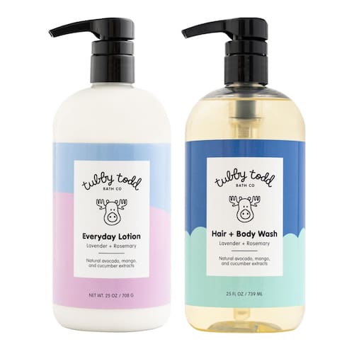 Aqui na Tubby Todd sabemos que cuidar da pele sensível pode ser difícil! Dê ao bebê o melhor começo com o pacote Wash + Lotion. 2 produtos suaves para ajudar a manter a pele sensível do bebê limpa, hidratada, feliz e saudável. Testados por pediatras e dermatologistas, estes produtos são hipoalergênicos, não irritantes e seguros de usar para bebês. - Uma rotina simples e segura de cuidados com a pele do bebê em 2 etapas para peles sensíveis, secas ou propensas a eczema; 2 produtos suaves criados com ingredientes limpos que são fáceis de usar com resultados eficazes; para todos os tipos de pele - O pacote Wash + Lotion é testado por pediatras, testado por dermatologistas, hipoalergênico e seguro para peles sensíveis; sem glúten, laticínios, SLS/SLES, parabenos - Limpe suavemente com cabelo + sabonete líquido; hidrate com loção diária - Tubby Todd os produtos são feitos com uma mistura perfeita de extratos naturais e ingredientes à base de plantas; nossas fórmulas são criadas com a pele sensível em mente - Inclui 2 produtos: 740 ml Lavanda Alecrim Hair + Sabonete Líquido Corporal, 740 ml Lavanda Alecrim Loção Diária