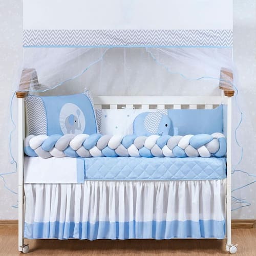 O Kit Berço Para Menino 14 Peças Com Saia e Travesseiro Azul é perfeito para compor o ambiente do quarto do seu bebê com muito conforto e estilo. Composto por 14 peças, esse kit é completo e oferece tudo o que você precisa para deixar o berço do seu filho ainda mais aconchegante.