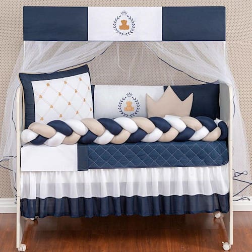 Kit de berço ursinho principe e princesa para bebe com edredom Cor: marinho Kit de berço ursinho principe e princesa11 pecas kit americano de berço trança para bebe