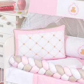 Kit de berço ursinho principe e princesa para bebe com edredom Cor: rosa Kit de berço ursinho principe e princesa11 pecas kit americano de berço trança para bebe