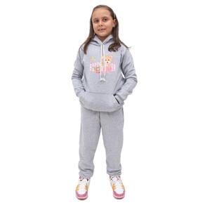 Kit de Blusa e Calça Moletom Infantil Menina Estampa Urso e Flores Costuras Reforçadas Inverno - Cinza - 12