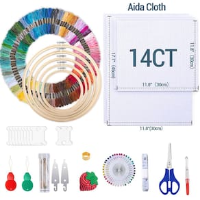 LoDrid Kit de bordado, bolsa de projeto de bordado com kit de bordado, estojo portátil para artesanato com kit iniciante, bolsa de armazenamento de suprimentos de bordado e kits de ponto cruz para - Kit de bordado: O kit de bordado contém linhas de bordado de 100 cores, 30 agulhas de bordado de 3 tamanhos, 10 bobinas, 5 tamanhos de argolas de bordado, 4 peças de pano aida de 14 quilates (45 cm x 30 cm, 30 cm x 30 cm, 2 peças para cada tamanho), 2 ferramentas de rosqueamento de agulha, 1 tesoura, 1 tesoura, 1 Fita métrica, 1 dedal, 1 ferramenta de destorcer, 1 almofada de pino e 40 pinos de costura - Compartimentos duplos: 3 bolsos com zíper no compartimento principal para armazenar diferentes materiais de bordado, como linha de bordado, almofada de alfinete, fita métrica; 2 bolsos de malha e 1 bolso superior elástico para armazenar manual do usuário, pano aida etc.; O compartimento circular secundário para armazenar as argolas de bordado separadamente das ferramentas de bordado - Zíper em forma de U: o design de zíper duplo em forma de U pode expandir totalmente o compartimento principal e colocá-lo em uma superfície plana, o que é transparente à primeira vista, facilitando a colocação ou retirada do kit de bordado; o zíper no bolso interno evita que os itens se espalhem - Almofada protetora: feita de nylon, e as almofadas macias grossas são adicionadas entre cada compartimento para fornecer várias proteções para seus itens e evitar danos acidentais aos itens em colisões; duas alças são convenientes para você carregar ao sair - Tamanho da bolsa DIY: 33 cm x 8 cm x 30 cm; Um bordado DIY para familiares ou amigos em festivais ou dias importantes, e também pode ser utilizado como decoração de interiores. Com a bolsa, você pode carregá-la quando viajar ou sair