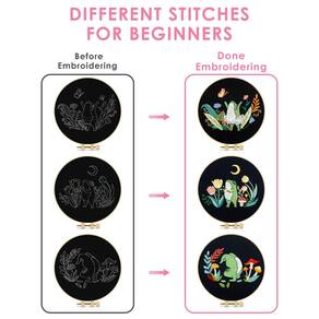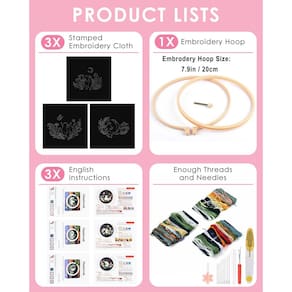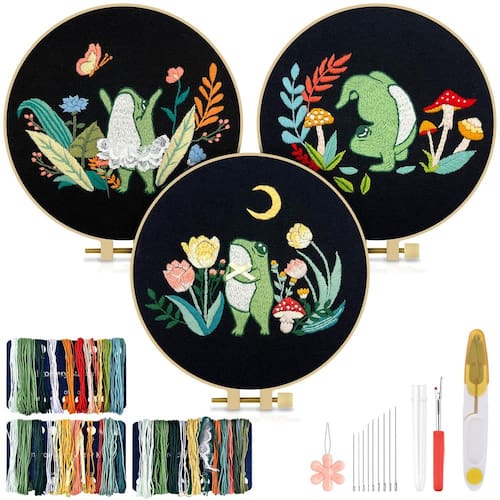 Kit de prática de ponto de bordado bela obra de arte pode ser feita por conta própria. Siga sua imaginação para aliviar o desconforto no trabalho e na vida. 3 conjuntos de padrões de bordado de sapo são ótimos para iniciantes adultos. A embalagem inclui: 1 x argola de bordado (tamanho: 20 cm) 3 x pano bordado com padrão (tamanho: 11,4 x 11,4 polegadas/29 x 29 cm) 3 instruções (sem garantia de versão em português). 1 ferramenta de rosqueamento. 1 tesoura. 1 x estriador de costura. Agulhas de bordado e linhas de bordado suficientes Como usar o aro de bordado 1. Separe a moldura interna e externa. 2. Coloque a moldura externa na mesa plana. 3. Cubra o pano bordado plano na moldura externa. 4. Pressione levemente a moldura interna na moldura externa com um pano bordado. 5. Vire o pano bordado para sentir o aperto, ele pode ser utilizado para bordado em estado apertado. - ?Conteúdo da embalagem: 1 argola de bordado, 3 tecidos de bordado com padrão, linhas de cores e agulhas de bordado suficientes, 3 instruções (sem garantia de versão em português). - ?Adequado para iniciantes adultos?Este estilo de bordado DIY é simples e diversificado, sem design de padrão complicado, adequado para iniciantes. O método de costura diferente que desperta sua criatividade para um novo padrão. - ?Instruções?O conjunto de kits de ponto cruz vem com um manual de instruções detalhado, ensinando como lidar com fio dental, padrão impresso e a maneira de emoldurar o bordado. - ?Argolas ajustáveis?As argolas de bordado têm um parafuso de ajuste que você pode apertar quando necessário para manter o tecido apertado como um tambor. - ?Bordado requintado DIY?Basta pensar que um bordado tão requintado feito por você vai surpreendê-los! Este estilo de kits de ponto cruz é perfeito para o Natal, aniversário, ação de graças, dia dos namorados, dia das mães, surpresa diária, etc.
