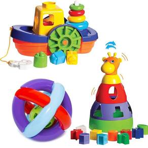 Kit de Brinquedos Educativos Barco + Girafa + Bola