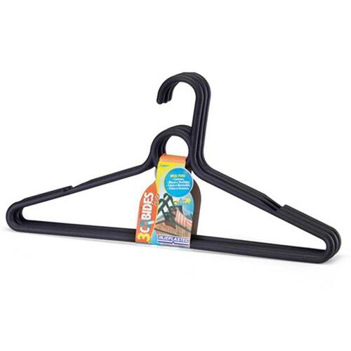 Informações importantes: Medidas aproximadas - 42,5 x 22 x 1cm(Largura x altura x espessura) Medida adicional - O gancho mede 13cm e o corpo 9cm aproximadamente Composição - Plástico Validade - Indeterminada Conteúdo - 1 unidade do KIT de cabides plásticos 3pçs 42,5cm largura Pratic preto Produto 100% nacional KIT de cabides plásticos 3pçs 42,5cm largura Pratic preto