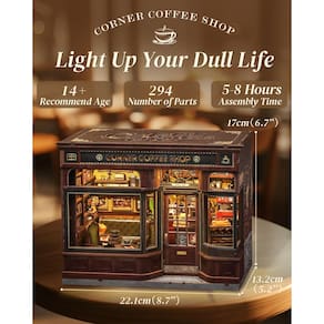 - [Projeto criativo de bricolage] Projetamos este kit de casa de bonecas Corner Coffee Shop em miniatura especialmente para iniciantes e também para qualquer pessoa que ame artesanato DIY. Conheça o lindo recanto com detalhes incríveis. Este kit de recanto de livros Cutefun é bastante leve e é uma boa peça de destaque na estante de livros.
