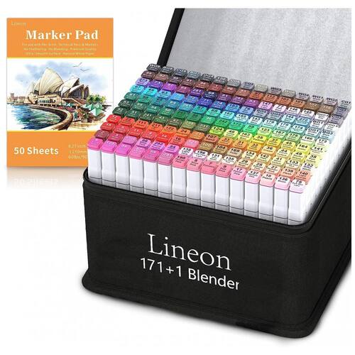 171 CORES 1 MARCADOR DE PONTA DUPLA DO LIQUIDIFICADOR SEM CORES Os marcadores de álcool de ponta dupla Lineon contêm ponta de bala pontiaguda de para detalhes e ponta de cinzel de 1 a para cobertura rápida. 171 cores e 1 liquidificador incolor marcadores profissionais altamente pigmentados e vibrantes se misturam bem sem deixar riscos para trás e podem adicionar dimensão ao seu trabalho artístico. CAIXA DE BÔNUS, PAD DE MARCADORES E TABELA DE CORES Os marcadores de arte Lineon vêm com 1 caixa de marcadores, 1 bloco de marcadores e 1 cartela de cores. O estojo de transporte preto perfeito para viajar e zenar, o marcador profissional se mistura bem e não sangra, a cartela de cores pode ajudá lo a corresponder à cor certa e a concluir cada peça do trabalho. CAPAS CODIFICADAS POR CORES E FORMA QUADRILATERAL As tampas com códigos de cores podem ajudá lo a organizar e identificar cores facilmente. O design da forma quadrilateral torna o confortável de segurar e pode impedir que os marcadores rolem em superfícies lisas. NOTA Os marcadores à base de álcool irão sangrar através do papel de coloração regular como outras marcas de marcadores de álcool, por isso é melhor desenhar em papel grosso, papel marcador. PRESENTE IDEAL O conjunto de marcadores de arte Lineon é bem embalado e vem com 172 marcadores de cores vibrantes e mais acessórios. É um presente de conjunto de arte ideal para família, amigos, crianças e artistas no aniversário, dia de Ação de Graças, Natal e etc Marca: Não Informado