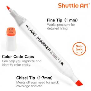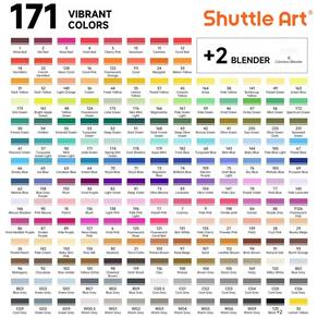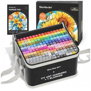 172 CORES ACESSÓRIOS 171 marcadores permanentes vibrantes 1 liquidificador incolor 1 bloco de marcadores 1 estojo de zenamento 1 cartela de cores. Nosso bloco de marcadores tem uma superfície lisa que pode evitar sangramento, manchas e enevoamento para o seu trabalho artístico, estojo preto com zíper é perfeito para zenamento e viagens, tabelas de cores podem registrar sua coleção de cores em um só lugar. Mais acessórios com preço mais barato PONTA DUPLA Os marcadores permanentes à base de álcool de ponta dupla Shuttle Art têm uma ponta larga de para cobertura rápida e uma ponta de bala pontiaguda de para destaques, sombras, esboços e escrita em geral. Nossos marcadores escrevem bem e se misturam facilmente. Eles são classificados para 300 metros de uso contínuo, o que fornece uma grande quantidade de tinta por marcador. FÁCIL DE MISTURAR TINTA E FORMA QUADRADA Os marcadores de ponta dupla Shuttle Art misturam se e estratificam se bem sem deixar riscos para trás e secar rapidamente. Misturar cores é muito fácil, colocando uma cor única em outra, criando uma paleta de cores ilimitada. O barril em forma de quadrilátero ergonômico exclusivo pode ser deslizado com facilidade e conforto. A forma única também evita que os marcadores saiam de superfícies lisas. CUIDADOS O conjunto de marcadores é atóxico e livre de ácido, para crianças e estudantes, em conformidade com ASTM D4236. Para evitar o sangramento da tinta durante o uso, a ponta não deve permanecer no papel por muito tempo. Os marcadores precisam escrever em um papel de marca específico para que não escorra para a próxima camada. Para evitar que o marcador seque e vaze a tinta, recapitule e mantenha o marcador na horizontal após o uso Marca: Não Informado