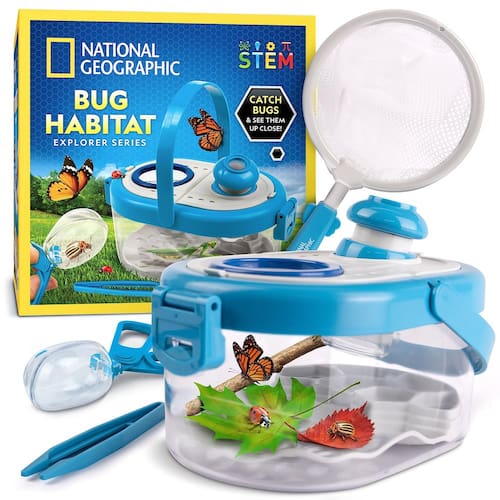 Kit de captura de insetos da NATIONAL GEOGRAPHIC para crianças — Habitat infantil com visualizador ampliado, caçador de insetos, pinças e guia de aprendizagem, habitat de insetos, brinquedos ao ar livre, kit de captura de insetos para crianças, gaiola para insetos, caixa para insetos — PEGUE INSETOS E OBSERVE-OS DE PERTO — Com este kit de coleta de insetos e habitat, as crianças podem capturar insetos e observá-los pelos espectadores ampliados do habitat. O coletor de insetos, a pinça e a rede facilitam a captura de insetos de todos os tipos. - CRIE O HABITAT PERFEITO PARA INSETOS — O habitat de insetos oferece uma visão de 360° e inclui uma base removível, tampa de fácil abertura com travas e 2 visores ampliadores. A base fornece um local para objetos naturais fazerem com que os insetos se sintam em casa enquanto são observados. - 2 LUPAS EMBUTIDAS - Os visualizadores ampliados são projetados para oferecer uma observação de perto dos insetos que você captura. A lupa maior e estacionária permite que as crianças vejam seus insetos de perto, enquanto as outras se telescópiam e se movem para observar os insetos em ação! - TUDO O QUE AS CRIANÇAS PRECISAM — Este kit de captura de insetos inclui tudo o que as crianças precisam para capturar e observar insetos em seu estado natural: recipiente de habitat e tampa com tampa ampliada e base removível, coletor de insetos em estilo tesoura, rede e pinça. - BRINQUEDOS EDUCACIONAIS DE ALTA QUALIDADE - Temos orgulho de fabricar brinquedos científicos práticos da mais alta qualidade, e todos os nossos produtos contam com um serviço excepcional. Se sua experiência não for excelente, avise-nos e faremos as coisas da maneira certa!