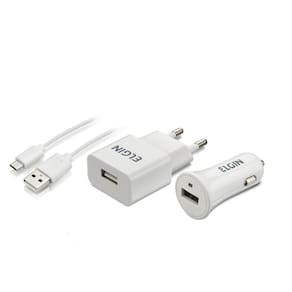 CARACTERÍSTICAS: Kit com carregador USB para tomada e veicular. Com tamanho compacto, é fácil de carregar, é compatível com dispositivos USB como tablets, smartphones, mp3, etc.