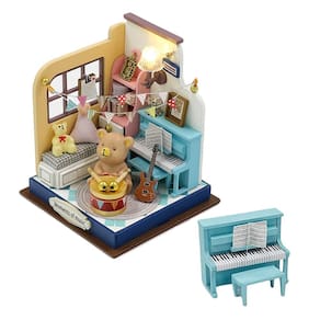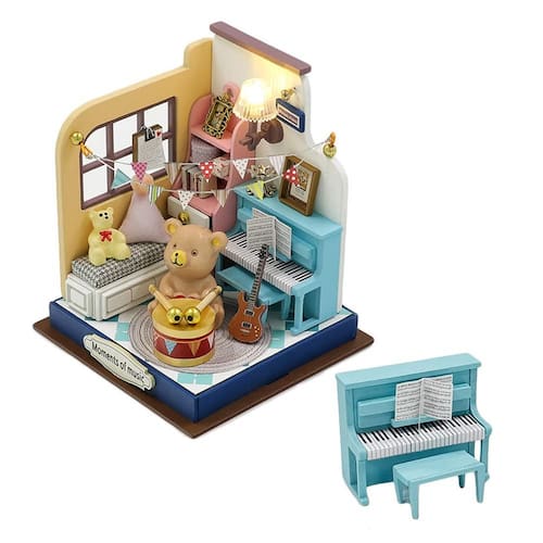 Kit de casa de bonecas em miniatura DIY Casa de bonecas de madeira com luzes LED