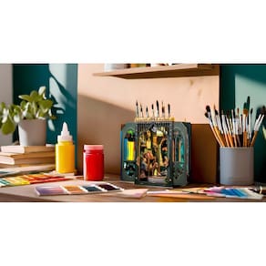 O kit Book Nook é um kit de casa em miniatura detalhado de bricolage e uma estante projetada para entusiastas de kits de casa em miniatura. Pode aliviar o desconforto para as pessoas, experimentar a diversão de montar, muito adequado para atividades familiares e atividades de adultos, estimular a criatividade dos adolescentes e decorar sua estante e biblioteca doméstica. - ?Kit de canto de livro exclusivo – Herbário da Escuridão?O recanto de livros é feito de madeira, todas as peças de madeira foram cortadas a laser e fáceis de remover, as peças são pré-coloridas e há uma instrução a seguir quando você configurar - ?Kit de casa em miniatura bem projetado?O projeto DIY é divertido, meditativo e relaxante, é uma boa escolha para atividades familiares nos fins de semana ou feriados - ?Fácil de montar?O kit booknook inclui 98 peças, sem desafio para iniciantes e adolescentes, leva cerca de 1-2 horas para terminá-lo - ?Decoração de estante para encantar suas prateleiras? O recanto de livros em miniatura é uma ótima decoração para estante de livros ou estante, um ótimo complemento para qualquer estante, serve como um suporte decorativo de estante, melhorando a estética da prateleira - ?Kit de canto de livro iluminado?O kit de casa em miniatura vem com capa contra poeira para proteger o produto acabado e as luzes LED tocadas pelo sensor adicionam ambiente - ?Lembretes amigáveis?Observe que não é um produto acabado, você precisa montá-lo. Fornecemos assistência ao cliente para desafios de montagem. O kit de recanto de livros requer cola artesanal e 2 pilhas AAA (não incluídas devido a restrições de envio), os compradores precisam prepará-las sozinhos.