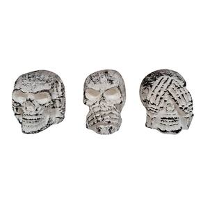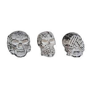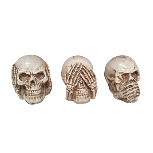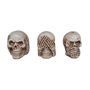 Transforme o seu espaço com o Kit de Caveiras Cega/Surda/Muda Branca Skull-01 em Resina. Este conjunto exclusivo traz profundidade e significado através da representação simbólica das três caveiras.