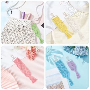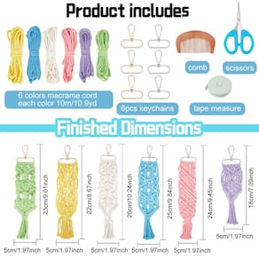 INFUNLY Conjunto de 6 chaveiros de macramê de faça você mesmo mini boho, kits de chaveiros de bolsa, berloques, chaveiro de macramê, pulseira com borlas para chave de carro, bolsa de chaves de carro, instruções de telefone incluídas - MAIS ACESSÓRIOS PARA CHAVEIRO BOHO: Nosso pacote inclui todos os suprimentos para completar 6 conjuntos de chaveiros de macramê, que tem: 6 rolos de cordão de algodão (cada cor para uma), 10 metros por cor. 6 chaveiros, 1 fita métrica, 1 pente e outros acessórios. Faça o que quiser. - Design boêmio feito à mão: este conjunto de cordões de pulso com chave boêmia feitos de fio de algodão adota técnica de macramê exclusiva, macios e duráveis, liberando suas mãos enquanto evita que suas chaves sejam perdidas. - Instruções detalhadas: um folheto longo detalhado com imagens ensina como fazer o chaveiro de macramê passo a passo. Inclui 6 modelos de chaveiro de macramê estilosos. - Alta qualidade: este chaveiro de macramê é feito de cordão de algodão e fecho de liga; é leve, confiável, não desbota facilmente. - Um bom presente para todas as ocasiões: nosso kit de macramê para iniciantes é um presente perfeito para familiares e amigos no Natal, Dia dos Namorados, Aniversários, Dia das Mães, etc. Também é uma boa decoração para chave, bolsa, mochila.