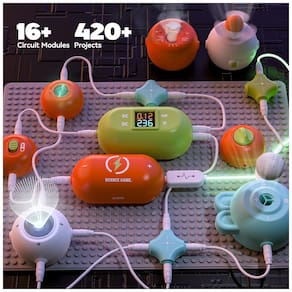 O kit de ciências SMILESSKIDDO RC1007 é um conjunto de eletrônica educativa com mais de 420 projetos possíveis, desenvolvido para introduzir crianças a partir de cerca de 5–12 anos aos conceitos básicos de circuitos elétricos. Ele utiliza 35 peças de circuito tipo snap (encaixe) — como chaves, LEDs, buzzer, ventilador, módulos de spray e iluminação RGB — que são montadas em uma base plástica sem necessidade de solda, bastando encaixar os módulos para formar ligações em série, paralelo e combinações com chaves.