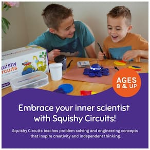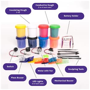 Este kit de aprendizagem STEM é uma ferramenta divertida e prática para ensinar o básico de circuitos elétricos usando massa de modelagem condutora e isolante. Com possibilidades ilimitadas, você pode dar vida às suas criações de massinha, como uma lagarta fofa e colorida, um robô apitando ou um avião girando. O kit inclui suporte de bateria, motor com ventilador, interruptor, campainha piezoelétrica, campainha mecânica, 40 LEDs, 7 potes de massa condutora e 1 pote de massa isolante. Este brinquedo educativo é uma ótima mistura de brincadeira e aprendizagem, incentivando o pensamento crítico, a resolução de problemas e o processo de pensamento de engenharia. O Squishy Circuits é seguro e excede os regulamentos de segurança de brinquedos, sendo utilizado em residências e escolas em todo o mundo por milhares de mãos experimentais de todas as idades.