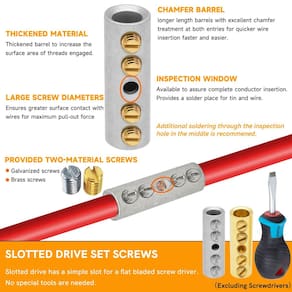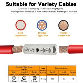 SVAAR Mangas de solda tubulares com orifício de solda conectores de extremidade de fio tipo parafuso Bem-vindo à SVAAR Brass Wire Connectors. Produzimos conectores de fio feitos de latão de alta qualidade para servir a função de fiação de forma suave e eficaz, sua fonte confiável para conectores de fio de alta qualidade. Nossos conectores são projetados para fornecer conexões elétricas seguras e eficientes em uma variedade de aplicações. ? Feito de latão grosso premium, tem excelente condutividade térmica e elétrica, alta maleabilidade, resistência à corrosão. ?Nossos conectores de emenda de extremidade de fio de parafuso têm cilindros de comprimento mais longo com excelente tratamento de chanfro em ambas as entradas. Livre de rebarbas, inserção de fio mais rápida e fácil. ? Com grandes diâmetros de parafuso garante maior contato da superfície com os fios para máxima força de extração, o que aumentará a força mecânica da conexão e maior segurança. ? Não são necessárias ferramentas especiais, parafusos estão disponíveis para cada aplicação. Conecte os condutores usando parafusos e com orifício de solda. ? Mangas de solda tubulares para condutores de cobre redondos sólidos e trançados. Adequado para conectar condutores em juntas retas. Cabos e cabos podem ser fixados por meio de parafusos de fixação e depois soldados através do orifício de solda. ? Com orifício de inspeção no centro para monitorar a inserção completa do cabo, também oferece um local de solda para estanho e fio. Recomenda-se solda adicional através do orifício de controle no meio. ? A construção robusta, o design compacto e o desempenho confiável são algumas das características que tornam nossos produtos mais confiáveis no setor. ? Nossa utilização de matérias-primas de alta qualidade para fabricar uma variedade suprema de produtos de conector de terminal de latão nos torna fornecedores confiáveis no setor. ? Parafusos de latão são fornecidos adicionalmente para soluções de fixação confiáveis e seguras. A unidade ranhurada tem uma ranhura simples para uma chave de fenda de lâmina plana. Feitos de latão, estes parafusos de cabeça de panela são resistentes à corrosão em ambientes úmidos, não magnéticos e oferecem boa condutividade elétrica. ? Com tubo termorretrátil adesivo de parede dupla 3: 1 para o seu trabalho, a tubulação forrada com adesivo garante uma vedação à prova d'água. O termorretrátil codificado por cores ajuda a diferenciar facilmente a polaridade, tornando a instalação sem complicações. Cilindro de chanfro para facilitar a inserção do fio. ? Grandes diâmetros de parafuso garantem maior contato da superfície com os fios para máxima força de retirada. O cano longo oferece alta força de arrancamento e segurança adicional. Cilindro espesso para aumentar a área de superfície dos fios engatados. Maior engajamento da rosca aumentará a força de arrancamento devido à maior força de aderência. Latão puro projetado para aplicações de alta amperagem. Os parafusos de latão são fornecidos adicionalmente para soluções de fixação confiáveis e seguras O tubo termorretrátil adesivo de parede dupla 3:1 garante uma vedação à prova d'água. ? Vários tamanhos de conectores de fio estão disponíveis de calibre 12 a calibre 4/0. - Conteúdo da embalagem: 6 peças. de conectores de extremidade de fio tipo parafuso calibre 4 com 24 peças de parafusos galvanizados e 24 parafusos de latão. Adequado para condutores sólidos e trançados. Mais uma coisa: fornecemos 6 peças de tubo termorretrátil adesivo de parede dupla 3: 1 para o seu trabalho (3 peças pretas e 3 peças vermelhas). - MATERIAL DE ALTA QUALIDADE: Nossos conectores de fio feitos de latão de alta qualidade com processo estanhado fosco especial, estanhado fornecem baixa resistência de contato e evitam a corrosão galvânica, protegem os conectores da extremidade da oxidação para fornecer desempenho elétrico e mecânico premium. - EXCELENTE CONDUTIVIDADE: cada conector de extremidade de fio de latão tem uma estrutura tubular de latão puro grosso, sem costura e peça única. Tem boa condutividade elétrica e pode atender às necessidades da maioria das conexões elétricas gerais. Conectores de emenda de latão fornecem a conexão elétrica de melhor desempenho entre suas fontes de alimentação e seu cabo de alimentação. - PROCESSO DE INSTALAÇÃO FÁCIL: O processo de usar conectores de fio de parafuso para conexão de fios é relativamente intuitivo e direto. Não são necessárias ferramentas especiais, nem habilidades profissionais complicadas, o que reduz a dificuldade de fiação elétrica. Os parafusos são apertados até a conexão completa dos condutores. Design simples de rosquear para instalação rápida e sem complicações. - Janela de inspeção: Nossos conectores de extremidade de fio de parafuso têm um orifício de inspeção no centro para monitorar a inserção completa do cabo, também fornecem um local de solda para estanho e fio. Recomenda-se solda adicional através do orifício de controle no meio. - BARRIL DE COMPRIMENTO MAIOR: Nossos conectores de emenda de extremidade de fio de parafuso têm cilindros de comprimento mais longo com excelente tratamento de chanfro em ambas as entradas. Livre de rebarbas, inserção de fio mais rápida e fácil. É equipado com grandes diâmetros de parafuso garante maior contato da superfície com os fios para máxima força de extração, o que aumentará a força mecânica da conexão e maior segurança. Garanta conexões de fio estáveis e confiáveis. - PERMITE MODIFICAÇÕES: Há uma opção de remover fios existentes e fixar novos em terminais de parafuso existentes, caso seja necessário no futuro. Os circuitos podem ser facilmente modificados quando necessário. Sua reutilização permite que os produtos sejam utilizados ao máximo e também ajuda a economizar dinheiro e p