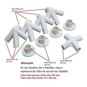 Kit De Conexoes Para Gazebo Tenda 9 Peças Ntk Ideal para manter a qualidade e resistência do seu gazebo Cor: Branco Indicada para os modelos desmontáveis Kit de conexões para gazebo é indicado para os modelos da Nautika: Fiesta, Fantasy e Green. Para repor ou substituir alguma peça quebrada é o modelo ideal para manter a utilização de sua tenda com total conforto e qualidade, sem a necessidade de comprar outro produto. Ele é fabricado em plástico resistente de alto impacto e é composto por 4 sapatas, 4 conectores laterais e 1 conector central. Indicamos seu uso nos modelos de tendas desmontáveis NTK. Informações gerais: Material: Plástico polipropileno de alto impacto Peso: 250 g Contém: 4 sapatas, 4 conectores laterais e 1 conector central Marca: NTK do vendedor: 3 meses do vendedor: 90 dias Marca: Não Informado