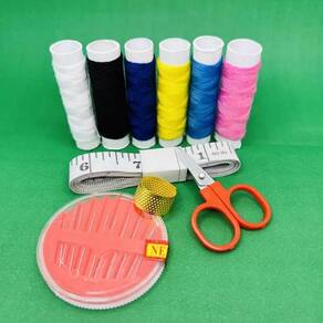 Contém: - 10 agulhas - 1 tesoura - 6 carretéis de linha - 1 fita métrica - 1 estojo específico para guardar as agulhas - 1 dedal - medidas aproximadas: 8cm de altura x 2cm de largura x 10,5cm de comprimento.
