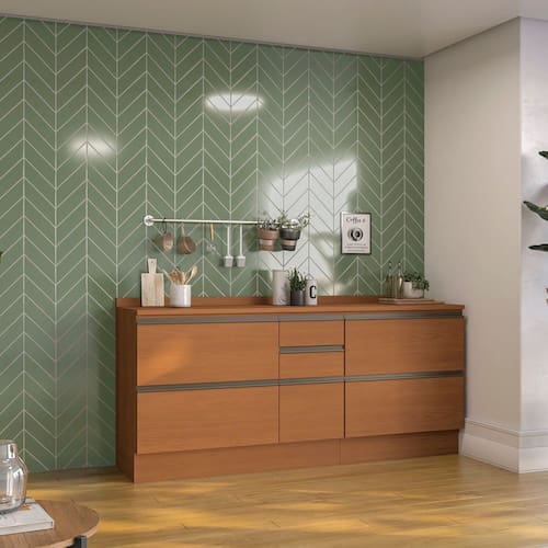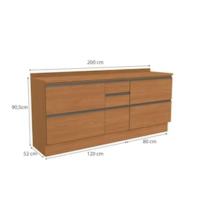 Beleza e qualidade com o kit CB1265 da Cozinha Nox da Kappesberg. Compacta e funcional, é produzida em MDP de 15mm, o que garante robustez e qualidade. Com módulos de balcão de pia, de 120cm, e balcão gaveteiro de 80cm, ambos com tampo, o kit possui amplo espaço para organizar louças e mantimentos. E para um acabamento perfeito, ele conta com rodapé, mas, acompanha as ferragens para ser montado suspenso na parede. Com até sete camadas de pintura e acabamento touch na cor canela, com a textura dos veios da madeira, além de combinar com todos os ambientes, garante a sensação de conforto e aconchego ao espaço. Os destaques ficam para o sistema de amortecimento nas portas, para um fechamento suave, e o puxador em alumínio na cor champagne, garante um design único e moderno. Acabamento da Prateleira: Pintura Escala de Brilho da Prateleira: Fosco Acabamento da Gaveta: Pintura Escala de Brilho da Gaveta: Fosco Material do Puxador da Gaveta: Alumínio Acabamento da Porta: Pintura Escala de Brilho da Porta: Fosco Material do Puxador da Porta: Alumínio Acompanha Tampo: Sim Ambiente Principal: Cozinha Balcão Suporta Pia: Sim codigo_ean: 7900288024251 Complexidade da Montagem: Média: pode ser montado por mais de uma pessoa e/ou necessite de maior conhecimento para montagem Cor: Canela Cor do Produto: Canela Cor Flex: Não Cor Interna: Canela Escala de Brilho: Fosco Espessura do Tampo: 25 mm Gaveta com Chave: Não Itens Inclusos: 2 Balcão, 2 Tampos Linha ou Coleção: Cozinha 18 Maxxi Manual de Montagem e Instalação: https://product-hub-prd.madeiramadeira.com.br/970015/documents/f9d93cb5-29ff-4ff6-8dcb-b9e5e399c140255248754451731437996264.pdf Marca: Kappesberg Material da Dobradiça/Corrediça da Porta: Metálica Material da Gaveta: MDP Material da Porta: MDP Material da Prateleira: MDP Material do Fundo: mdf Material do Tampo: MDP Material dos Pés: MDP Medida de cada item (A x L x P): Balcão: 88 x 120 x 52 / Balcão: 88 x 80 x 52/ Tampo: 2,5 x 120 x 52 / Tampo: 2,5 x 80 x 52 Montagem Flex: N/A Necessita Montagem: Sim O Balcão Acompanha Pia: Não Origem do Produto: Nacional Pés Reguláveis: Não Peso: 93,2039 kg Peso Máximo por Gaveta: 6 kg Peso Máximo por Prateleira: 7 kg Possui Pés: Rodapé Possui Portas: Sim Possui Prateleiras: Sim Possui recorte para Cooktop: Não Possui Rodízio: Não Possui Vidro: Não Produto Montado: Sim Recomendações de Uso, Manutenção e Limpeza: Use um pano limpo e ligeiramente umedecido em água ou álcool (recomendamos álcool etílico hidratado). Logo após, seque a superfície com um pano seco e macio. Em grandes superfícies limpe pequenas áreas de cada vez, trabalhando de baixo para cima. Sapatas Niveladoras: Não Sistema de Montagem: Parafuso Philips Tipo de Corrediça da Gaveta: Metálica Telescópica Tipo de Dobradiça da Porta: 35 mm Tipo de Puxador da Gaveta: Externo Tipo de Puxador da Porta: Externo