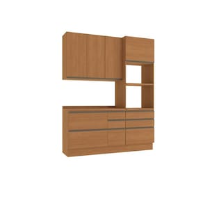 Beleza e qualidade com o Kit Cozinha Maxxi CB446 da Kappesberg. Prático e moderno, ele é produzido em MDP de 1,5 cm , para mais robustez e qualidade. Com balcão e aéreo de pia, de 120cm, kit forno e microondas e tampo, ele pode ser utilizado em todos os espaços. Compacto, o kit conta com prateleiras e gavetas, ideal para organizar louças e mantimentos. E para um acabamento perfeito, ele conta com rodapé, mas acompanha as ferragens para ser montado suspenso na parede. Com até sete camadas de pintura, seu acabamento touch na cor canela, com a textura dos veios da madeira, além de combinar com todos os ambientes, garante a sensação de conforto e aconchego ao espaço. Os destaques ficam para o sistema de amortecimento e os puxadores em alumínio na cor champagne, que garantem um design único.