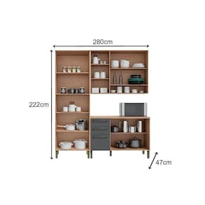 Kit De Cozinha Modulada 3 Peças Napoli Prime (1 Armário + 1 Balcão + 1 Paneleiro) C3p02 Castanho/- Ronipa