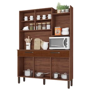 O Kit Cozinha irá se tornar o charme de sua cozinha, seu design diferenciado dispõe de um nicho para decoração superior podendo ser utilizado para vasos, flores e outros. Tem a sua disposição de um grande espaço para Eltrodomésticos podendo acomodar um micro-ondas, sua matéria prima valoriza o meio ambiente sendo feita de madeira de reflorestamento.