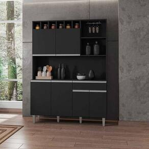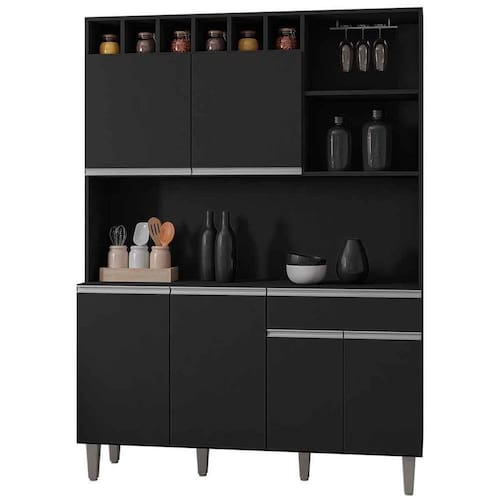 Kit de Cozinha Aline 6 Portas e 1 Gaveta Preto -
