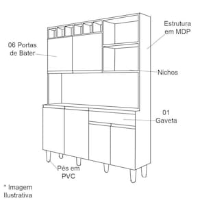 Armários para cozinhas são a solução para organizar aqueles utensílios que ajudam na preparação das refeições. Esses armários ajudam a maximizar o espaço disponível na cozinha. O Kit de Cozinha é ótimo para organizar as suas panelas, bandejas, potes e até mesmo aqueles eletrodomésticos que facilitam o seu dia-a-dia, como liquidificador, fritadeira, espremedor, etc. O Armário Kit de Cozinha possui estrutura em MDP e acabamento em pintura UV, ou seja, tem durabilidade e resistência. Além disso, ele tem 6 portas de bater com dobradiças metálicas, 1 gaveta, nichos e prateleira interna.