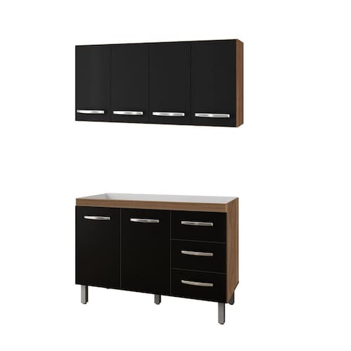 Kit de Cozinha com Aéreo 120m Mara e Balcão para Pia 120m Bianca Sem Tampo - Savana/Preto Móblis