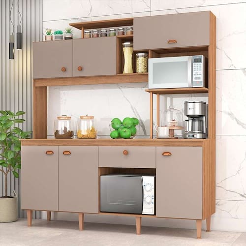que tal o kit de cozinha iata?quem precisa de uma cozinha completa para criar ótimas receitas pode contar com os compartimentos do kit iata! com estrutura única que facilita a organização, ele tem todos os cantinhos necessários para apoiar utensílios, louças e mantimentos, enquanto também auxilia no preparo daquele prato gostoso. além de toda a usabilidade, esse móvel ainda é um ótimo reforço para a decoração graças aos espaços externos, que podem receber enfeites que reforçam o charme e personalidade do ambiente. falando em décor, a cor versátil do móvel é perfeita para quem quer um ambiente mais clássico e um lar-style tradicional. e ou não uma adição inspiraradora para o seu doce lar? Marca: Modern