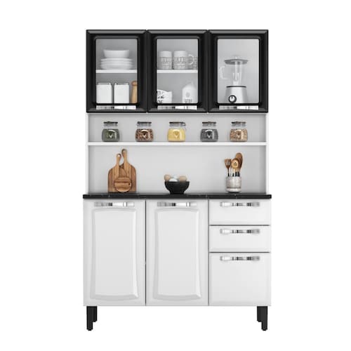 Cozinha com estrutura em aço e costas em madeira(HDF), garantindo mais durabilidade e estabilidade.