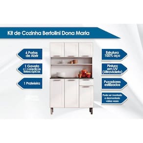 Kit de Cozinha Compacta Dona Maria c/ 6 Portas e 1 Gaveta 105cm Branco/Preto - Bertolini