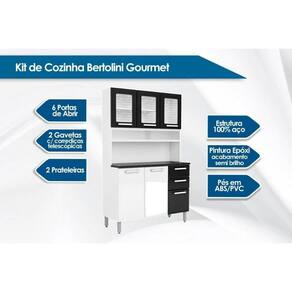 Kit de Cozinha Compacta Gourmet c/ 6 Portas (3 c/ Vidro) e 2 Gavetas 120cm Preto - Bertolini Marca: Bertolini