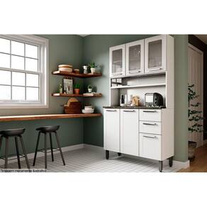 Kit de Cozinha Compacta Múltipla c/ 6 Portas (3 c/ Vidro) e 2 Gavetas 105cm Branco/Preto - Bertolini Marca: Bertolini
