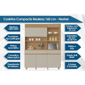 Kit de Cozinha Compacta Realeza c/ 4 Portas 5 Nichos e 2 Gavetas 160cm Carvalho/Greice - Nesher